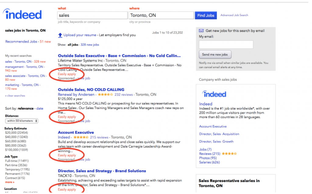 The PPC model places emphasis on delivering a high volume of candidates to employers. As a result, we’ve seen a fundamental change in how job seekers behave in their job search. Job seekers are heavily encouraged – some might say persuaded – to apply to as many jobs as possible. Let’s look at Indeed’s home page.